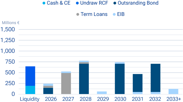Details on debt maturities and on the issued notes are shown respectively in the chart and the table below: