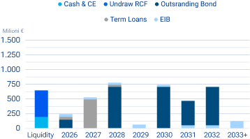 I dettagli delle scadenze del debito bancario e dei prestiti obbligazionari emessi sono riportati rispettivamente nel grafico e nella tabella sottostanti: